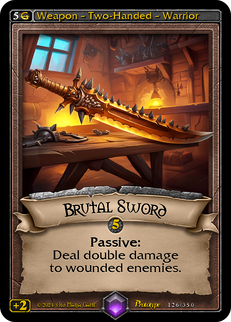 Weapons allow champions to attack and can have effects like Range, preventing counter-damage.